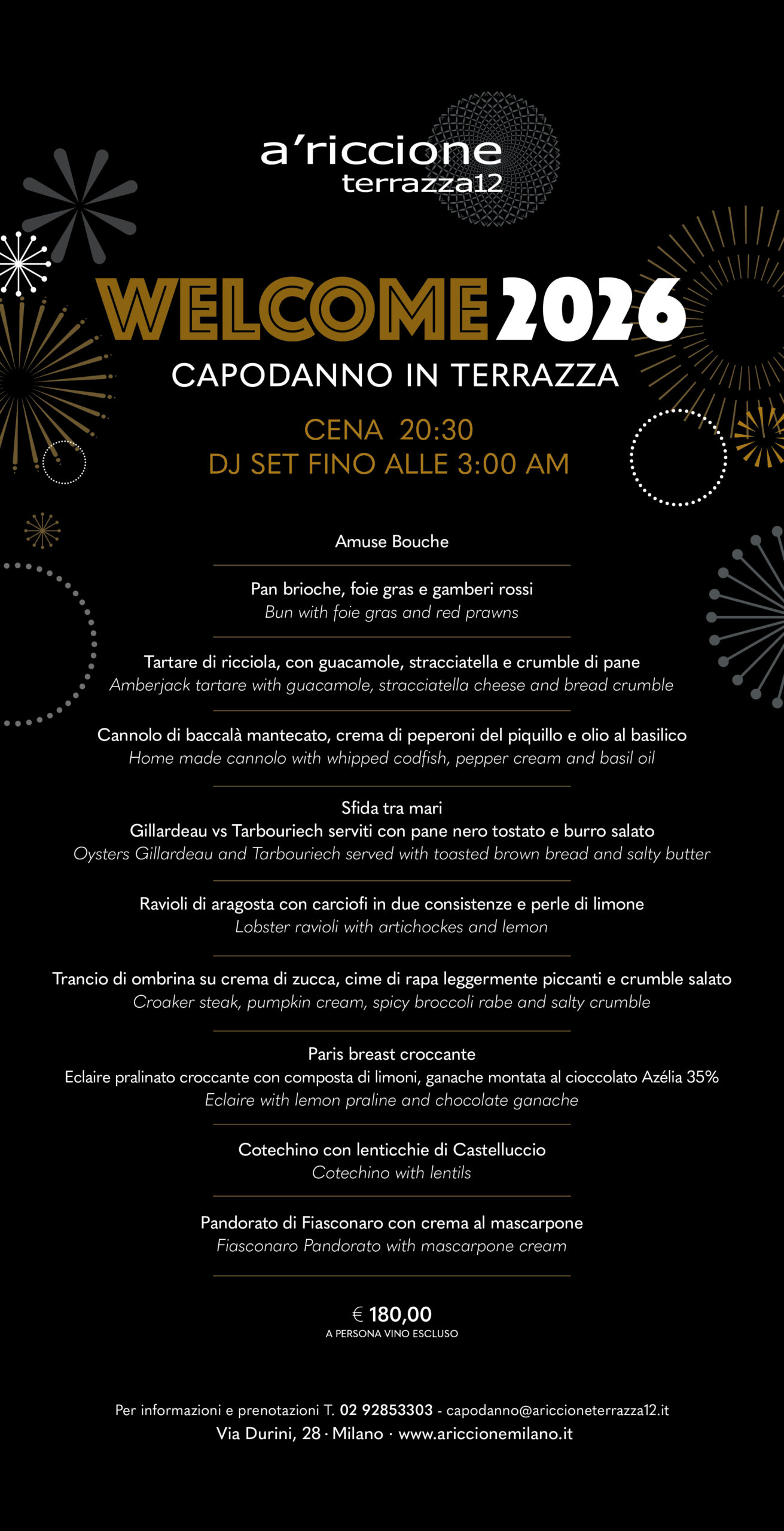 For parties or private events: lara@ariccioneterrazza12.it